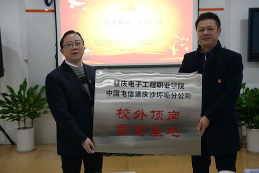 2019年12月2日,重庆电子工程职业公司党委副书记唐玉林、组织部部长刘洪光、通信工程公司党总支书记曾晓宏、经理陶亚雄、移动通信技术教研室主任赵阔以及骨干教师等一行来到中国电信重庆沙坪坝分公司,进行党支部“党建翼联”签约仪式和校企合作“校外顶岗实习基地”授牌。 中国电信股份有限公司重庆沙坪坝分公司党委书记、总经理雷波对重庆电子工程职业学院一行表示热烈欢迎,并带领大家参观了中国电信5G+AI应用体验......