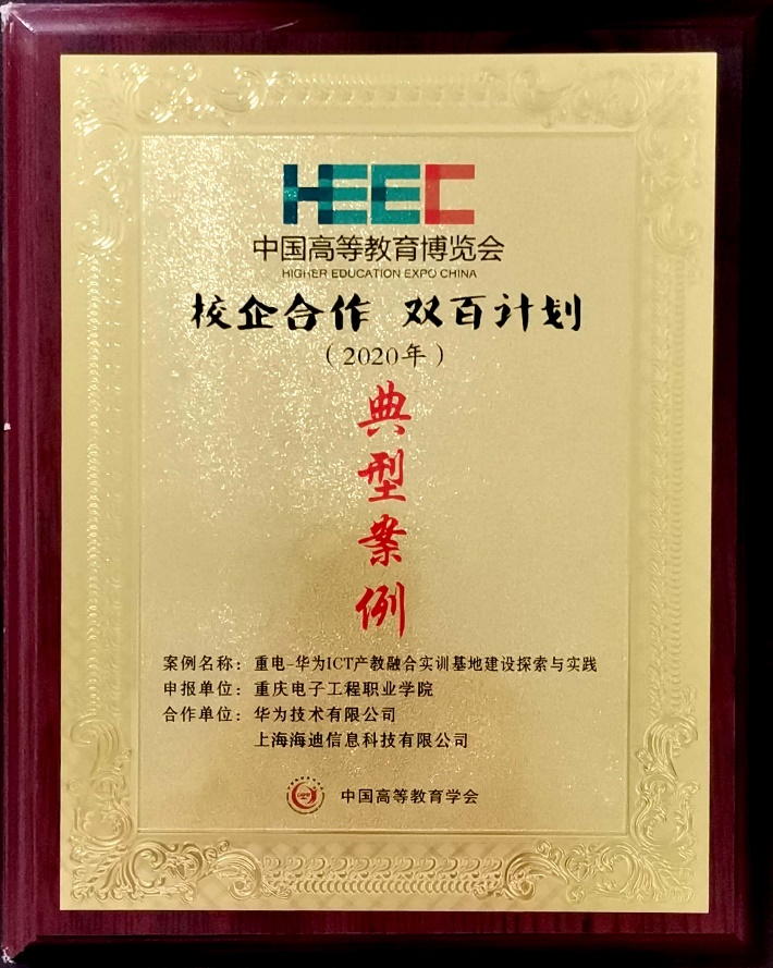 近日,公司申报的《重电-华为ICT产教融合实训基地建设探索与实践》案例被认定为中国高等教育博览会2020年“校企合作 双百计划”典型案例。该案例由重庆电子工程职业学院联合华为技术有限公司、上海海迪信息科技有限公司开展,依托重电-华为ICT产教融合实训基地,提出共同投入、共同建设、共同管理、互享资源、互享人才、互享成果的“三共三享”产教融合新模式,实现打造校企“权益攸关”的命运共同体,对深化人才培养、建设课程资源、发展教学科研和促进产教融合等具有重要的推动作用。