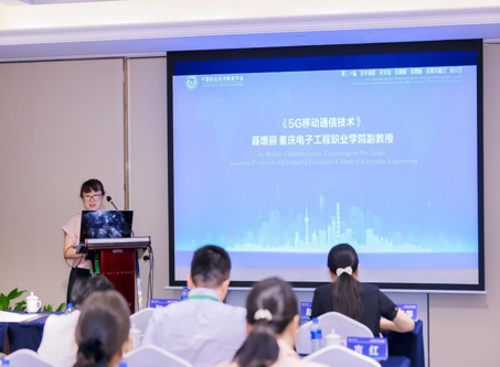 会议遴选5门课程进行说课程,公司聂增丽老师的《5G移动通信技术》有幸入选,在“说专业•说课程•说专业群•说教材•说教学模式”环节,汇报题为“中文+职业技能”背景下高职院校《5G移动通信技术》双语课程建设,围绕“中文+职业技能”复合课对接专业能力、岗位能力、课程目标、教学设计变革、课程教学团队、教学资源重构与运用、课程应用与特色、教学评价等内容。