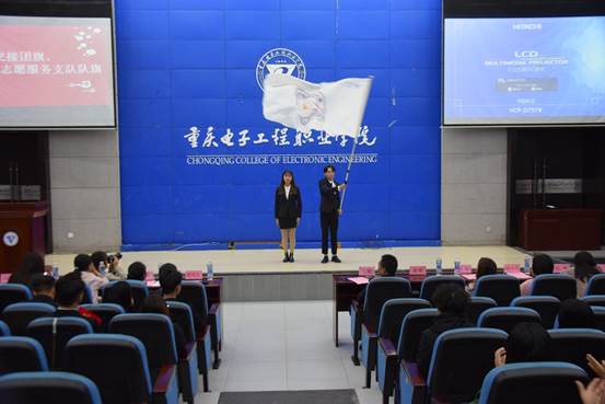 伟德国际1949第七届团总支副书记与伟德国际1949第八届团总支副书记交接团旗
