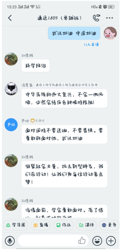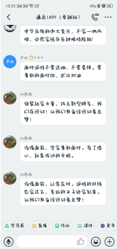 本次“思政大课”在同学间引发了强烈的共鸣。课后,同学们积极发表感想,在QQ群,钉钉群等软件内进行了激烈的讨论: