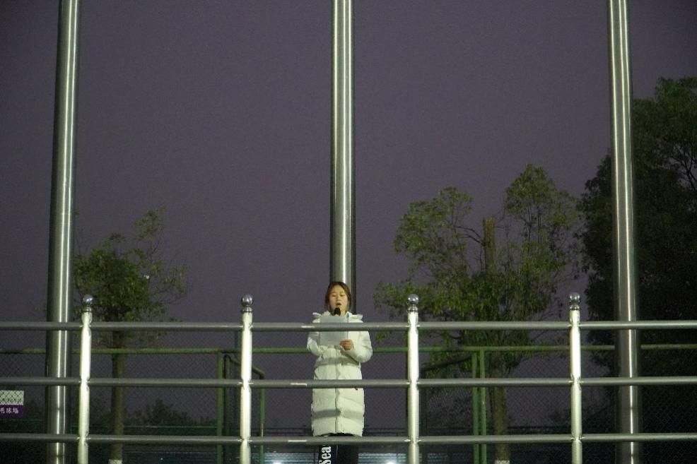 清晨7点15分,参加升旗仪式的师生们身着整齐的服装,早早来到操场,整齐列队。7 点30分,升旗仪式正式开始。由学校国旗护卫队组成的护旗方阵迈着整齐有力的步伐,护卫着鲜艳的五星红旗走向升旗台。在激昂的《义勇军进行曲》中,升旗手振臂一挥,五星红旗冉冉升起。全体师生面向国旗行注目礼、高唱国歌,爱国之情在每个人心中涌动。