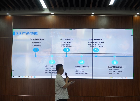 本次大赛的初赛由学院两个系部从众多参赛队伍中筛选出16支队伍进阶到决赛。决赛前,学院团总支负责人赵旭老师宣布比赛规则,16支队伍依次上台路演,每个项目的路演时间为3-5分钟,路演结束后由评委老师就路演项目进行提问,项目组成员进行答辩,答辩时长3分钟。选手们在比赛过程中表现从容、思路清晰、逻辑严谨、表达流利,赢得了评委的肯定。