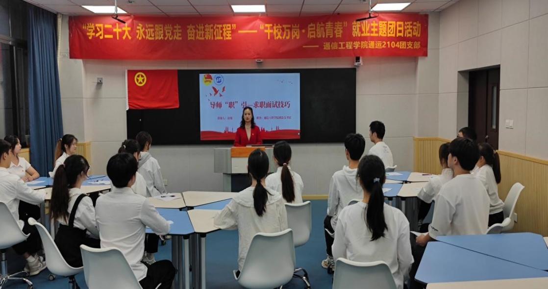 本次就业主题团日活动主要从:知识讲授--树立就业观念、导师“职”引—-求职面试技巧、“优”从简出--展现自我风采、规划生涯--创就非凡人生、模拟面试--提高就业能力、交流总结--成就就业梦想六个方面来展开,为通信学子提供全方位的就业指导,提高就业态度、促进观念转变。