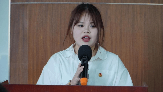 通信类2301班孟钥同学作为学员代表发言道:“青,取之于蓝,而青于蓝。作为当代青年,我们要始终坚定理想信念,做马克思主义的坚定拥护者”。