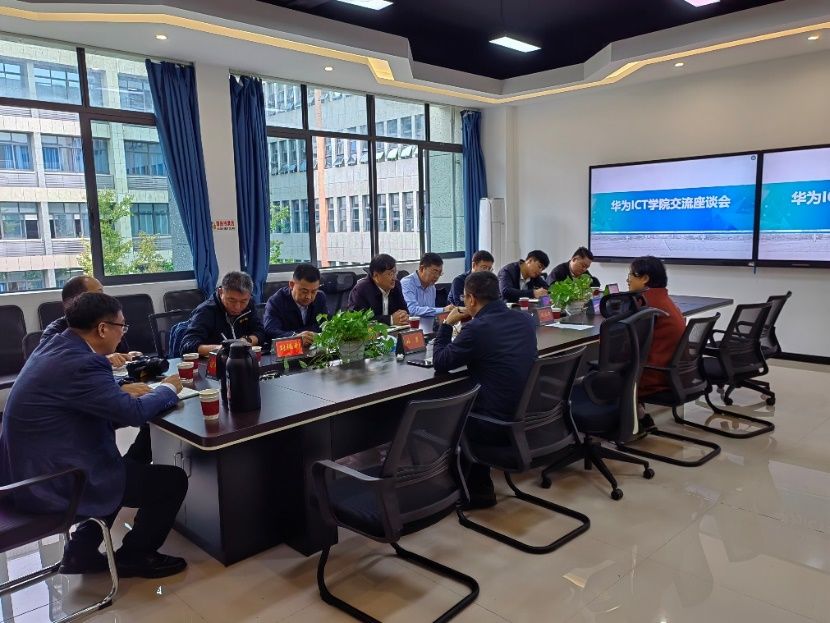 在陶亚雄经理陪同下,满军书记、杨文利主任一行先参观了“重电-华为智慧创新中心”,随后开展了华为ICT公司交流座谈会。座谈交流中,张伟党委书记对淄博师范高等专科学校和河北建材职业技术学院的领导老师表示热烈欢迎,介绍了学校建设发展历程以及未来规划;随后,陶亚雄经理介绍了学院在ICT公司建设的举措,与会人员在申创本科、人才培养、科研创新等方面进行了深入交流。