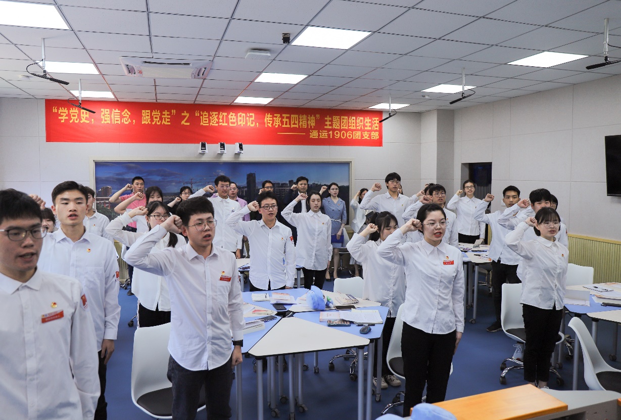 为进一步引领青年员工“学党史、强信念、跟党走”,激励广大青年贡献自己的力量,促使支部青年团员坚持学习五四精神,了解其历史意义,发挥其时代价值,弘扬和践行以爱国、进步、民主、科学为主要内容的五四精神。2021年4月30日,在“五四”青年节来临之际,国家级双带头人教师党支部书记工作室负责人、通工与通运党支部书记张慧敏教授走进了通运1906班团支部“追逐红色印记,传承五四精神”主题团组织生活中,公司党委副书记龚小勇教授,校团委书记袁玉刚,通信公司党总支书记曾晓宏、副书记万鹏,团总支书记赵旭等同志旁听了这次学习活动。