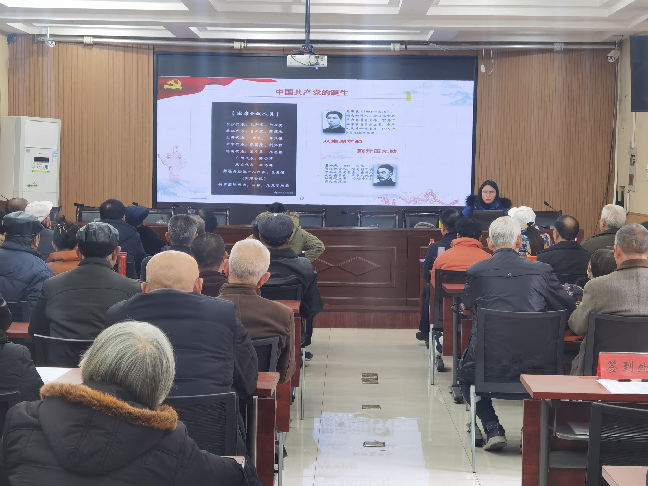 为深入贯彻落实习近平总书记在党史学习教育动员大会上的重要讲话精神,把党的成功经验传承好、发扬好,通工与通运党支部书记张慧敏、教师党员毛焱颖于2021年11月30日赴陈家桥街道办事处为50余名退休党员开展“重温党史,不忘初心”讲党史活动,回顾党的一百年征程,从历史中汲取思想的力量、信仰的力量、道德的力量、实践的力量。
