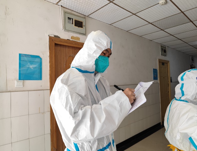 (“楼长”带领组员老师核查每个寝室员工的情况并逐层为员工送餐、送物资)