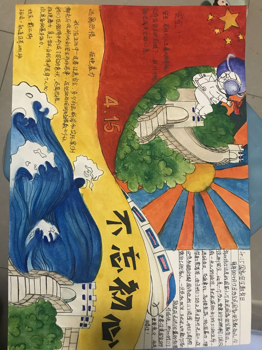 为了开展好本次活动,服务站就本次手抄报的目的、主题、内容、形式等做了详细的布置。活动中,同学们积极参与,从材料收集、版面设计、绘图书写等方面都做了精心设计。在这个美好季节,同学们利用课余时间绘制一幅幅生动的手抄报,用自己的方式响应“全民国家安全教育日”的活动号召,“国家安全”的种子在同学们心中生根发芽。