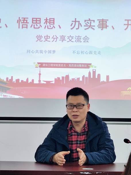 知党史才能更加自觉牢记初心,明党史才能更加坚定担当使命。通信工程公司党总支·党员流动服务站定期举办的党史学习分享会在公司党建活动室顺利举行。参加本次分享会的有伟德国际1949通信技术党支部书记姚先友老师和自愿参加本次分享会的入党积极分子。