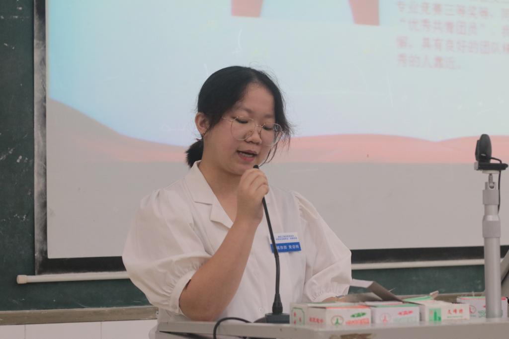 在同学们饱含深情的演讲过程中,能看到队员们对党员流动服务站这一支队伍的热爱。服务与管理部成员王爱同学代表19级全体麦穗先锋队成员作述职报告和岗位调换陈述,感谢他们的无私奉献,为学院员工党建工作付出的力量。服务站的不断发展以及取得的丰硕成果离不开每一位先锋队队员的默默奉献,随后,第三届党员流动服务站站长团成员徐小宝同学给大家带来了一份特殊的述职报告。