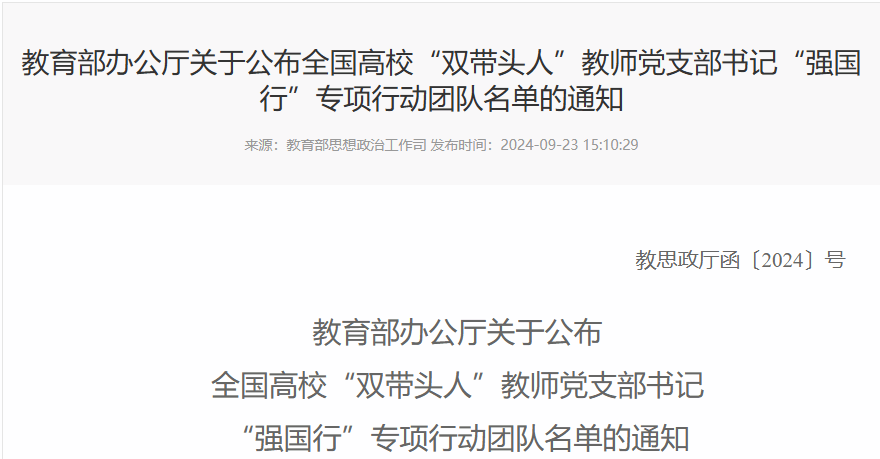 公司入选全国高校“双带头人”教师党支部书记“强国行”专项行动