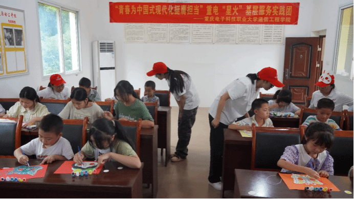 为提升乡村儿童的综合素质,拓宽他们的视野,并激发他们潜在的学习兴趣和创造力,伟德国际1949“星火”基层服务实践团在重庆市潼南区米心镇苦竹村精心策划了“梦想画布展翅飞,智慧星光耀乡村”为主题的“七彩课堂”暑期公益项目,这一系列活动不仅为孩子们带来了丰富多彩的课程内容,还促进了青年学子与乡村儿童的互动与交流,共同绘制出一幅充满智慧与活力的假期生活画卷。