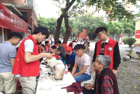 到达社区后我们也得到了社区负责人的欢迎与接待,很快志愿者们便搭建起了一个小小的便民维修服务点。从活动开始到下午五点来维修小家电的居民络绎不绝,本次活动社区很多的人事先不知道。但是为了让社区的人们的小家电得到及时的维修,大家还轮流着值班、用餐。通信协会的干事都积极认真的对待社区居民带来的每个电器,共同探讨电器的故障。志愿者们把所有电器的维修的情况都进行了登记,各种损坏原因、元件的更换情况一目了然。其他干事们都积极配合部长以及其他负责人的安排。