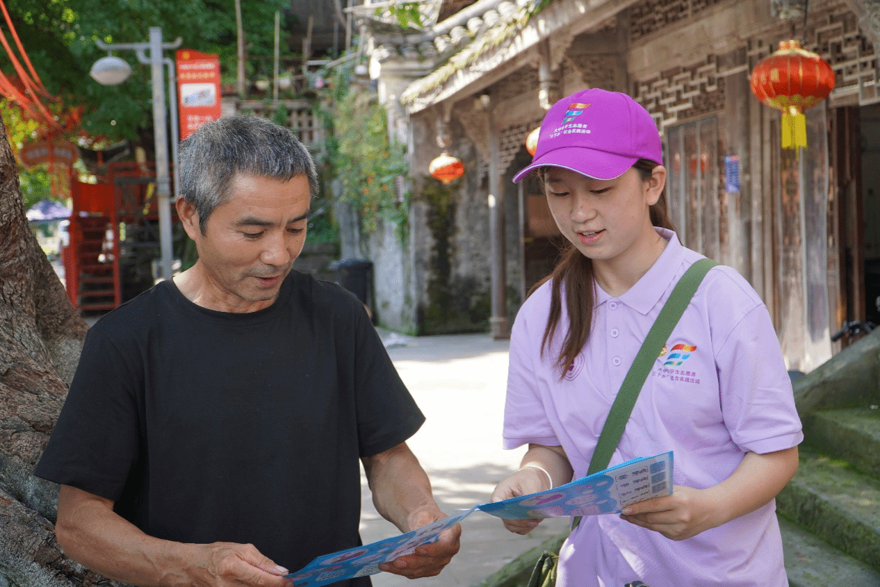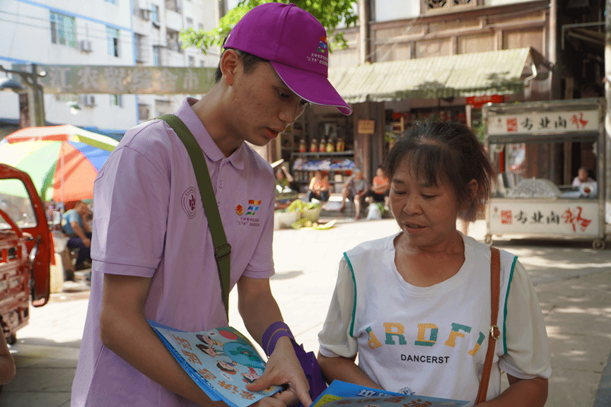 为促进语言相通、文化共融,重电“星火”智汇乡兴实践团联合通信工程公司党总支·党员流动服务站麦穗先锋队于2025年7月2号在潼南区双江镇开展以“推广普通话,连通你我他”为主题的普通话推广行动。